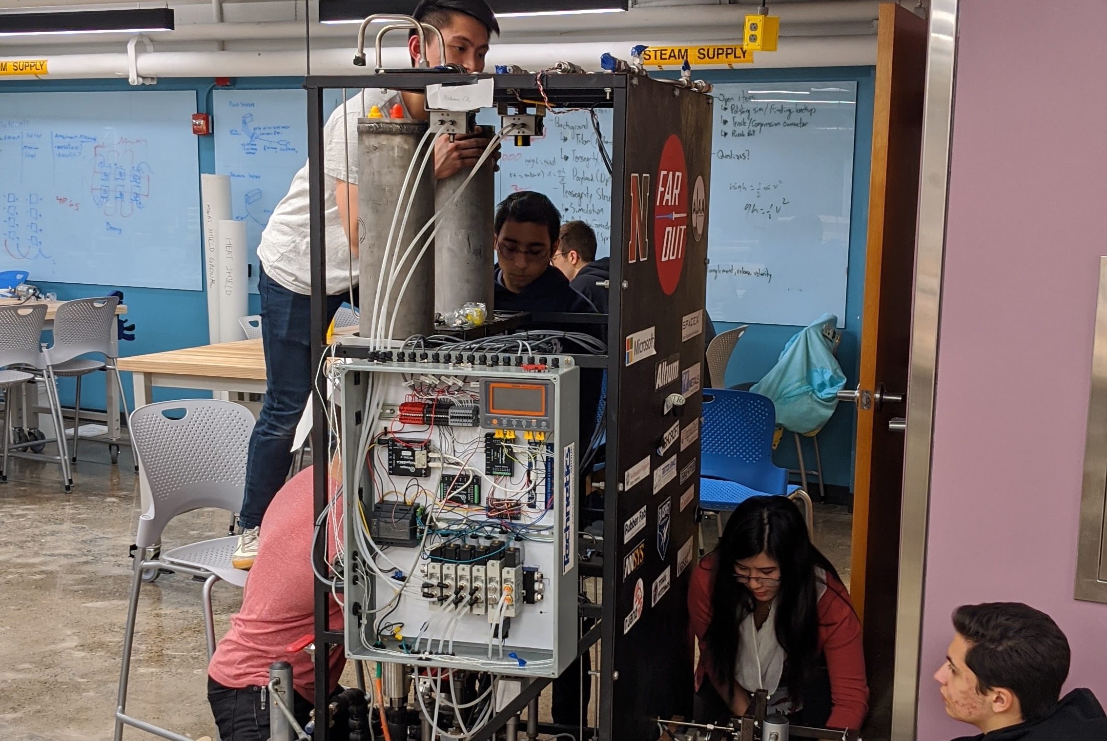 Ford leitete die Gruppe, koordinierte alle Versuchen und kaufte die Werkzeuge. Jackson berechnete alle notwentige Flussigkeitsbewegungen und chemische Reaktionen. Julian und Ethan baute das Stromnetz.